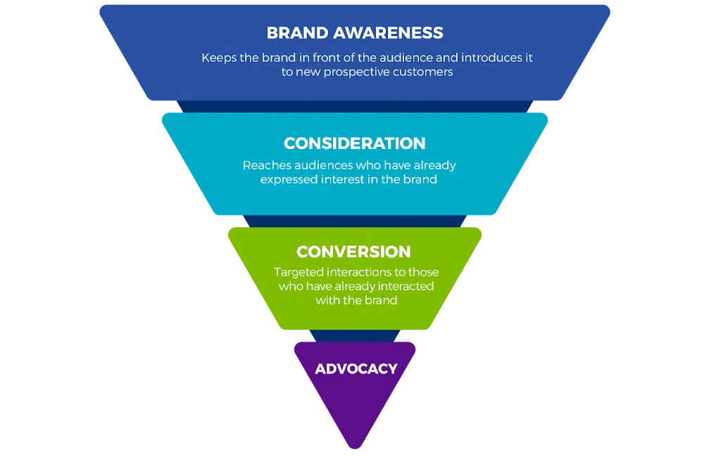 Funnel marketing is the systematic sale of various products to the customer. We can create different layers of marketing funnels from awareness to purchase. The funnel includes four main stages – awareness, interest, consideration, and action. By proper marketing, people at each stage will get converted and become clients.